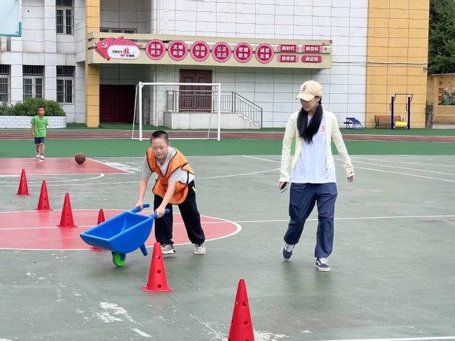 本次趣味运动会项目由志愿者们自行设计组织,由商洛特殊教育学校辅助提供小球、小推车、敏捷圈等道具,“宁商携手 以爱融爱”夏令营全体营员参加。