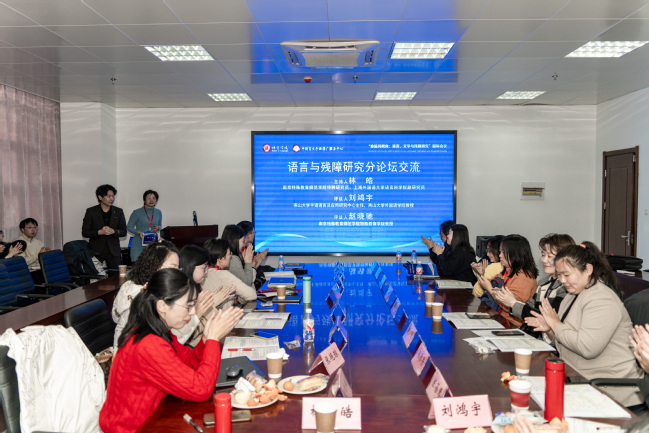 在“语言与残障研究”分论坛交流中,美国华盛顿大学博士生张宇亭分析了母语与后期学习者在描述及物事件中的结构灵活性。上海外国语大学曾莉副教授,探讨了手语中的反身代词和长距离指称现象。金年会金字招牌诚信至上手语研究团队从各方面展开了探讨,赵晓驰教授分析了中国手语中的基本颜色词及其语法特点;徐琴芳教授介绍了干预项目及远程麦克风技术对聋校小员工沟通和读写能力的影响,指出技术干预能够显著提升聋生的语言能力;张艳琼教授分享了手语词汇的多模态研究框架;刘卿教授分享了聋人及听障老员工汉语书面语连动句偏误调查研究,探讨了聋员工在汉语连动句中的语法偏误。