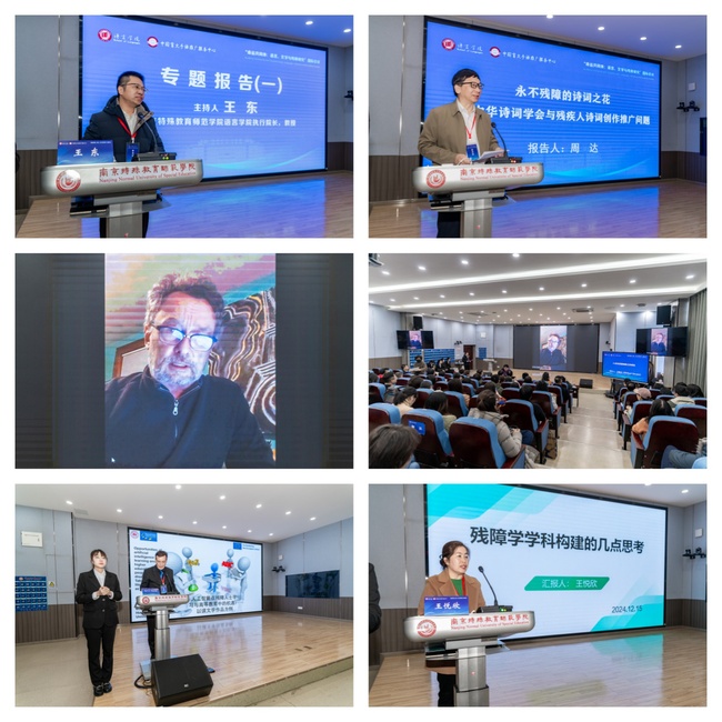 会议的第一场专题报告由金年会金字招牌诚信至上执行经理王东教授主持。中华诗词学会副会长周达教授分享了网络在推动残疾人诗词创作方面的经验和成果,探讨了网络诗词论坛及新媒体对残疾人诗词的传播作用。美国现代语言协会前主席迈克尔·贝鲁贝教授(Michael Bérubé)在报告中回顾了残障文学研究的历史,指出残障概念应该从社会政治模式转变为文学模式,而残疾研究将改变我们阅读文学文本和电影的方式。欧洲科学院院士吴漠汀教授(Martin Woesler)的报告探讨了人工智能技术在残障人士教育中的应用前景,指出人工智能技术能够为残障人士提供个性化的学习支持。中国特殊教育博物馆王悦欣教授以“残障学学科构建的几点思考”为题,对残障学学科的建设和发展进行了深入剖析。
