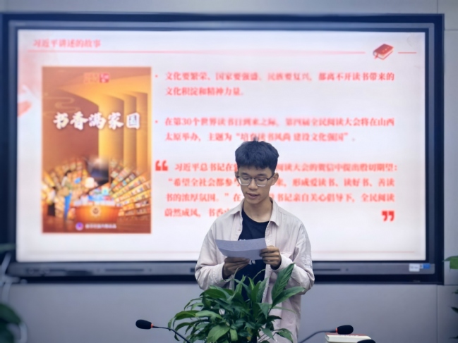 本次读书分享会不仅是一次思想的碰撞,更是一次精神的洗礼。同学们通过深入阅读和交流,更加深刻地理解了习近平新时代中国特色社会主义思想的丰富内涵,也更加坚定了自己的理想信念。杨菊鑫老师听完大家的感悟也分享了自己的看法,“作为新时代青年,我们要牢记总书记的嘱托,做到不仅要读有字之书,还要读无字之书,以实际行动践行,努力成为有理想、敢担当、能吃苦、肯奋斗的新时代好青年 ,在全面建设社会主义现代化国家的新征程中贡献自己的青春力量 !” 朱学源老师在发言中指出:“青年是国家的未来和民族的希望,希望同学们通过阅读这两部书籍,能够汲取更多的精神力量,将个人的成长与国家的发展紧密结合起来,努力成为有理想、有本领、有担当的青年一代。”