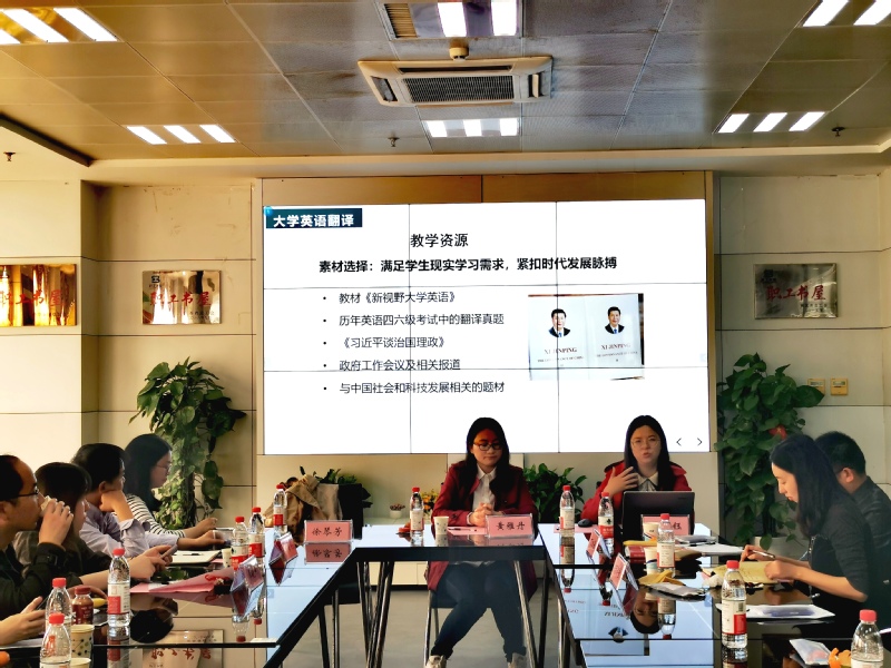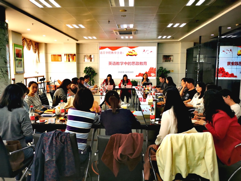 大学外语教研室的季晓燕主任展示了参加学校课程思政培训的教学案例、单楠老师交流了课程思政培训的心得体会,英语系何艳群老师分享了英语课程视频制作的经验,老师们就课程思政的理论与实操方面进行了热烈的讨论和交流。