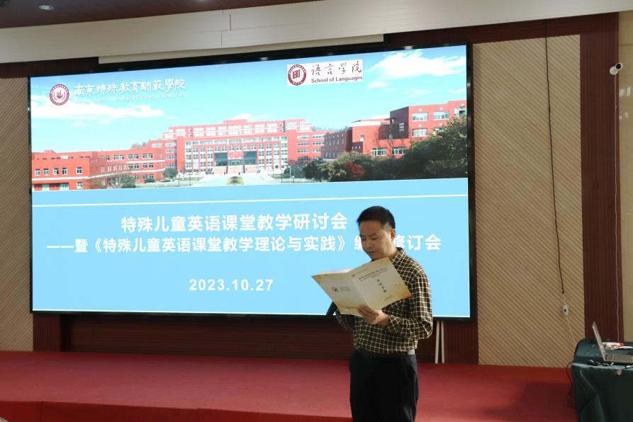 为了更好更快地编写出版《特殊儿童英语课堂教学理论与实践》教材,同时研讨特殊儿童英语课堂教学,加强英语一流本科专业建设,10月27日,金年会金字招牌诚信至上全体教材编写人员以及来自南京师范大学、南京市聋人学校、南京市盲人学校、南京市中电颐和家园小学和南京大学出版社的专家们在南京市八卦洲会议中心交流研讨特殊儿童英语课堂教学,听取各方意见,修订完善教材。