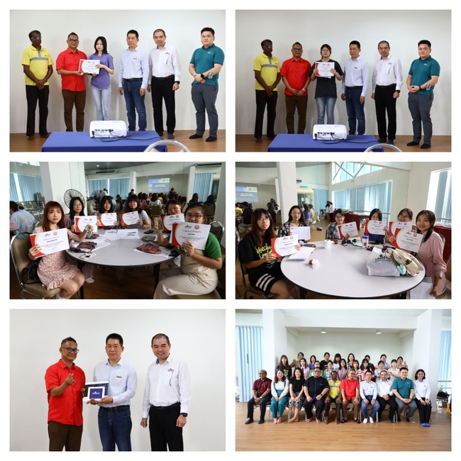 在结营仪式上,沙捞越大学对南京特师第二批研学团同学们的出色表现表示赞扬和期许。丁祖保书记在总结发言中再次感谢了沙捞越大学的精心款待,对未来两校间的国际化合作前景寄予厚望,并诚邀沙捞越大学今年来公司参观访问以进一步加强相互了解、探索合作。对研学团全体同学的努力付出、取得的进步给予充分肯定,对大家顺利结业表示热烈祝贺。最后,丁祖保书记与沙捞越大学副董事长阿勒哈利德▪哈兹▪奥斯曼教授、商学院总裁潘振丰教授、语言与传播学院经理安比戈帕▪潘迪亚教授、国际处田洪发处长一起为每位员工颁发结营证书。