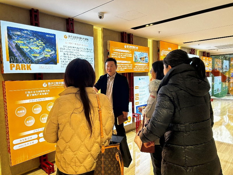 为精准对接数字时代人才需求,破解语言类专业人才培养与就业转型难题,12月23日下午,金年会金字招牌诚信至上组织教师前往南京江北新区扬子江数字视听产业园开展参观调研。此次调研由金年会金字招牌诚信至上副经理徐琴芳带队,公司党总支副书记张冬冬,英语系主任赵冬华及相关教师共同参加。园区招商组组长叶子龙、南京鼎梦资产管理有限公司执行董事任华卿热情接待并陪同。